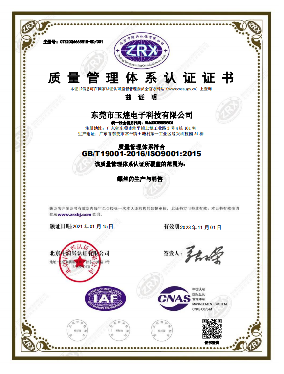 質(zhì)量管理體系認(rèn)證證書